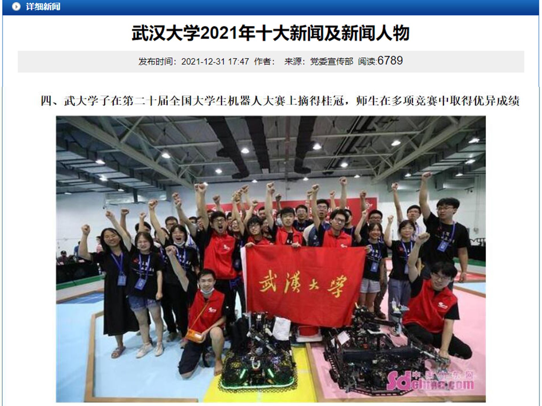 过去一年,杏吧 分团委以先进典型为引领,充分挖掘优秀素材,广泛宣传引导,凝聚榜样力量。2018级四个全寝保研宿舍推送登上学校官方微信平台,机器人队获奖的报道当选学校年度十大新闻,团属新媒体宣传力度排行全校第三。举办科技创新活动表彰大会、科研双选会,报道全国大学生自强之星雷舒婷,化榜样为力量,构建优良学风。2021年,机器人队夺得全国机器人大赛冠军,并代表中国在世界赛上获得最高荣誉奖;此外,动机学子在互联网+、节能减排等大赛中也都获得了优异的成绩。