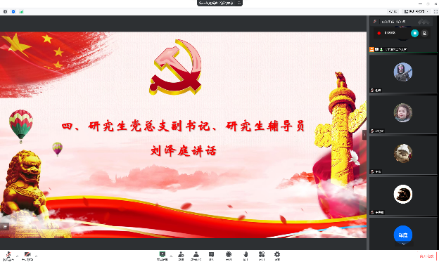 之后,刘泽庭就学校疫情防控期间大家关心的问题进行了解答,就疫情期间的党建工作开展要求进行了强调。他提到,学生党员骨干要当好“领头雁”“排头兵”,在学院内凝心聚力、统一意识,引导大家理性思考、勇于担当,筑牢疫情防控坚固防线。