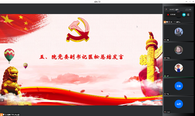 最后,匡松进行总结发言。他对学院研究生学习党的二十大精神工作开展提出了要求,希望全体研究生加强理论学习,关注国家大事与行业变化,将个人发展与国家发展结合起来,把握机遇、迎接挑战,为中国科技自立自强奉献自己的力量。