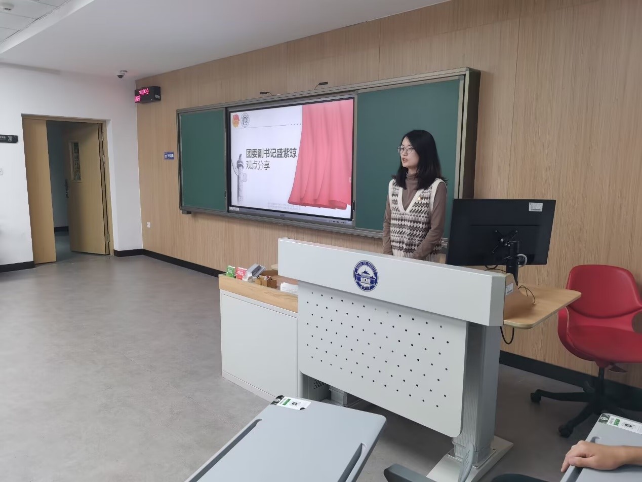 学院团委副书记盛紫琼也作为嘉宾分享了二十大报告的学习感想。她希望同学们能加强理论学习,不仅要多学习“是什么”,更要多思考“为什么”和“怎么做”,以实际行动真正让青春在全面建设社会主义现代化国家的火热实践中绽放绚丽之花。