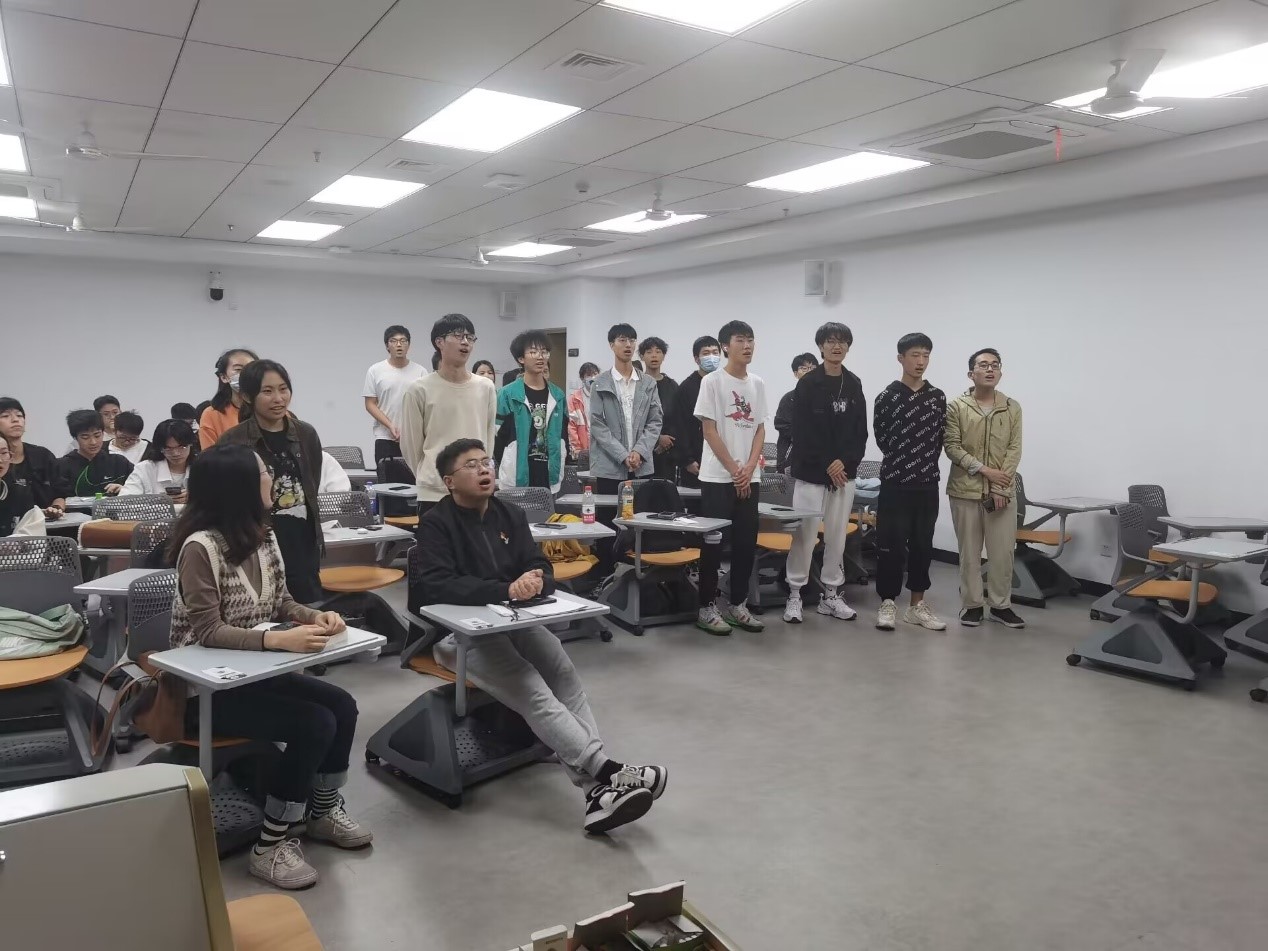 接着,两个团支部以红歌会的方式共庆二十大的胜利召开。第一团支部选择了《歌唱祖国》。激昂的歌声传递强烈的爱国意识召唤力、民族精神凝聚力,引起巨大的情感共鸣。第四团支部选择了《我和我的祖国》。歌曲承载着厚重深沉的社会历史政治内涵,承载着感念共和国艰苦卓绝的奋斗历程的心灵悸动,承载着国人挚爱共和国的心路历程和情感空间。