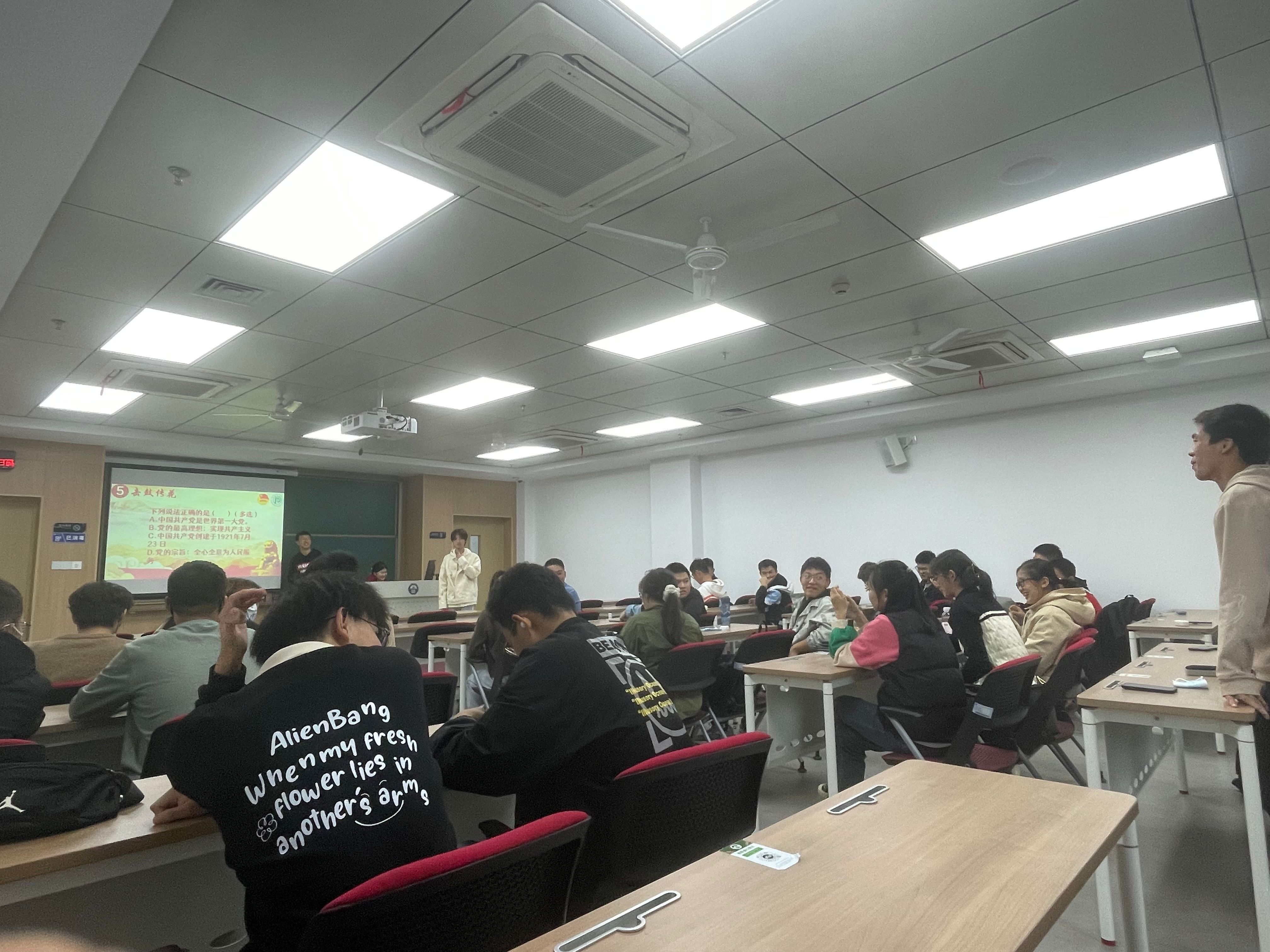 活动第五项,进行击鼓传花游戏,同时考察团员对与党有关的基础知识的掌握情况。基本所有同学均能准确答出。可见团员青年们对党的历史,党的文化,党的追求均有一定程度的了解。最后,刘昱枫同学进行了总结与补充。