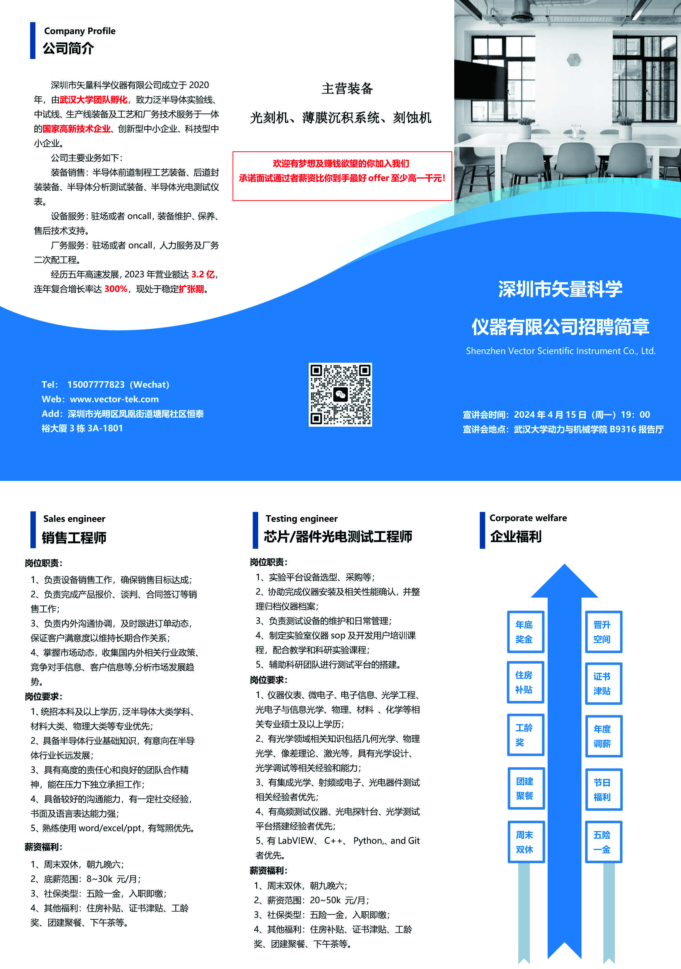 4月15日 19:00 学院报告厅| 深圳市矢量科学仪器有限公司招聘宣讲会