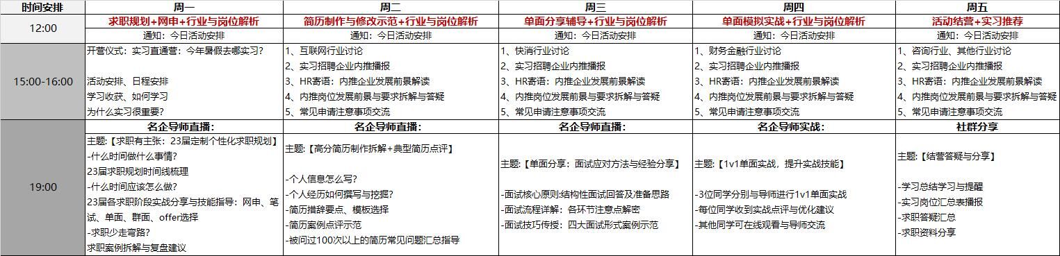 【23届实习求职直通营】23届福利来啦~~~求职规划、简历制作、面试辅导、实习推荐~活动时间:6月13日-6月17日日程安排: