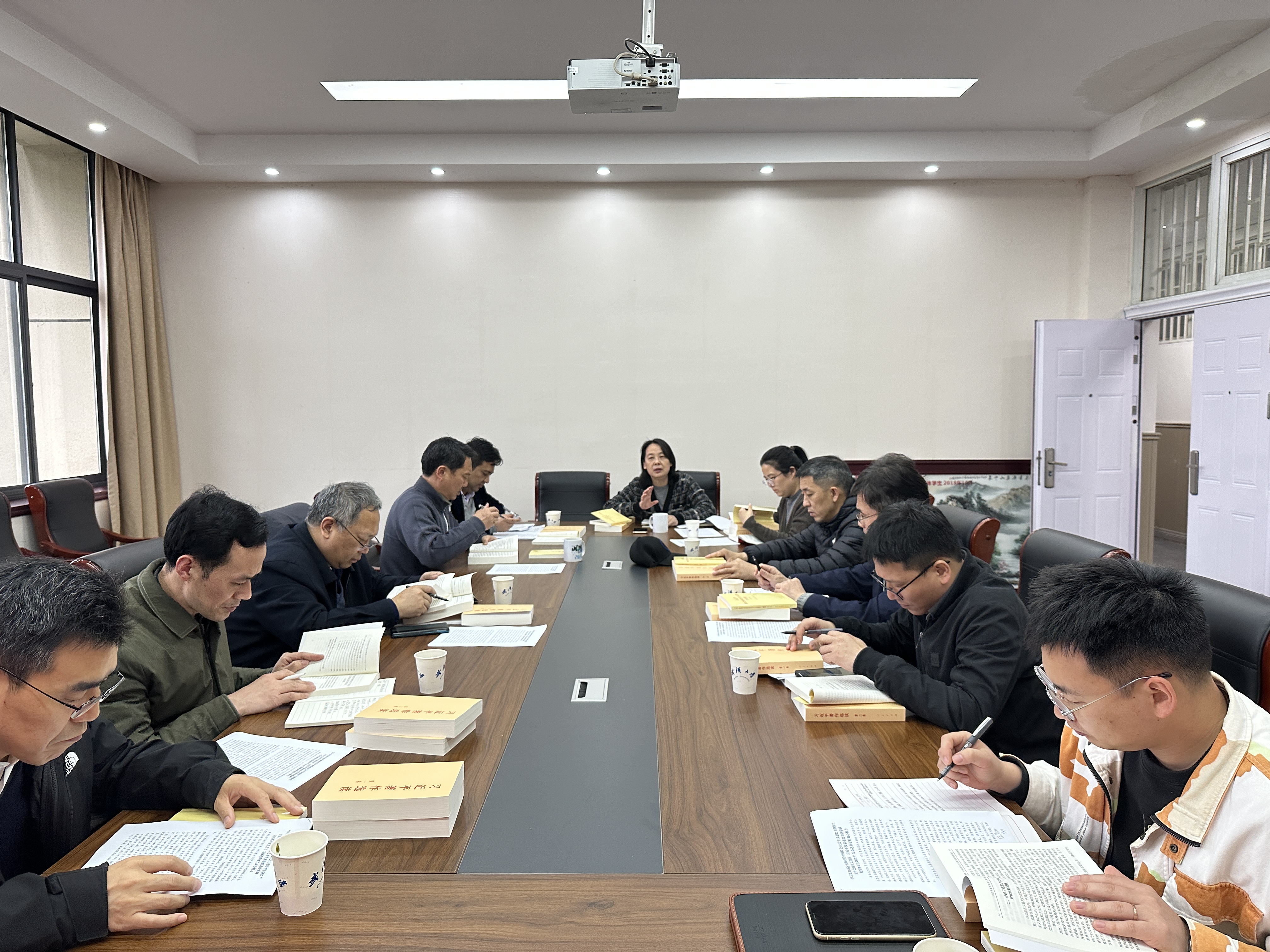 (供稿:刘海、黄佳倩子,图片:段宁)为深入开展学习贯彻习近平新时代中国特色社会主义思想主题教育,根据党中央部署和学院主题教育工作安排,4月24日,学院主题教育读书班开班,并围绕加强党的政治建设和思想建设,坚定捍卫“两个确立”,坚决做到“两个维护”相关篇目,进行第一次集中学习暨党委理论学习中心组第二次集中学习。学院主题教育领导小组成员、党委委员、主题教育工作组成员参加会议。