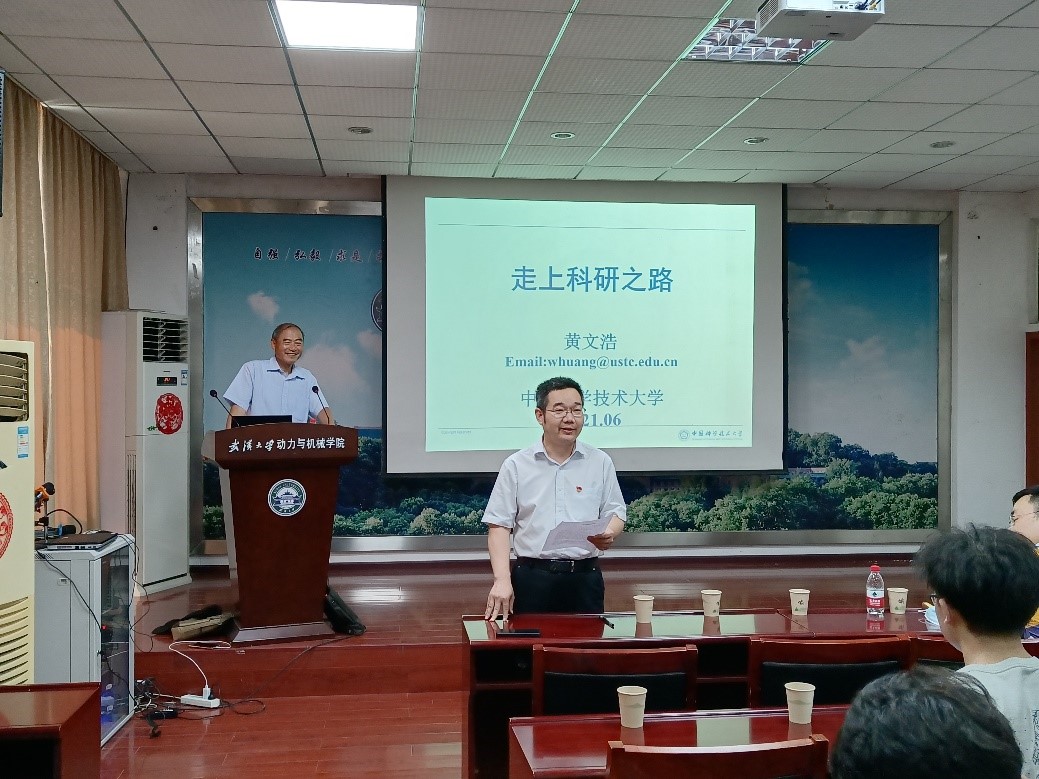 本网讯(通讯员:王伟 编辑:于昊楠 审核:刘泽庭)为帮助广大学子拓宽视野,交流思想,提升科研兴趣,杏吧 研究生党总支邀请了中国科学技术大学黄文浩教授来杏吧 做报告。报告会于6月28日下午在学院学术报告厅举行,报告题目为“走上科研之路”。学院党委书记郭新立、党委副书记李琦,工业科学研究院副院长李辉出席了本次报告会。