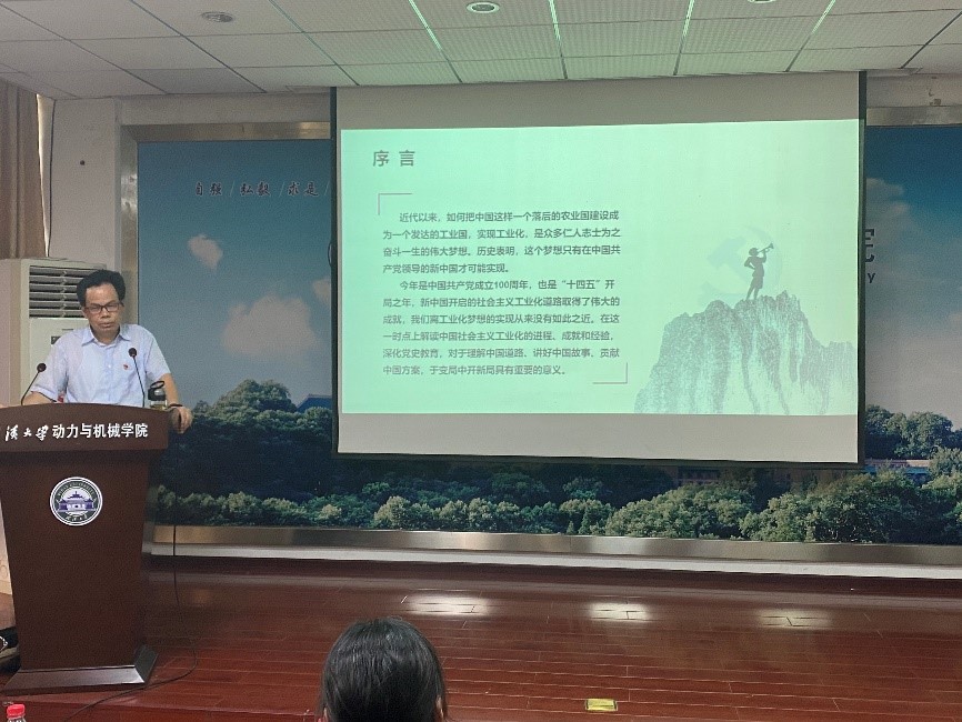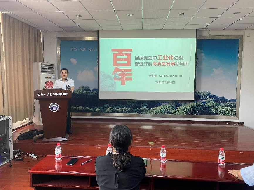 本网讯(通讯员:于昊楠 编辑:王伟 审核:刘泽庭)为积极贯彻习近平总书记在党史学习教育动员大会上讲话精神,回望历史、展望未来,加快建设科技强国,迎接党的百年华诞,6月28日下午,杏吧 研究生党总支与发展规划与学科建设办公室党支部开展了联合主题党日活动,有幸邀请到杏吧 发展规划与学科建设办公室主任、水射流理论与新技术湖北省重点实验室主任巫世晶教授主讲了《回顾党史中工业化进程,奋进开创高质量发展新局面》。本次活动由学院党委书记郭新立主持。