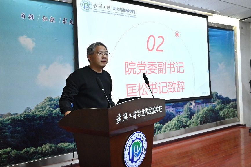 会议第一项由院党委副书记匡松书记致辞。他指出研究生会成员要发挥好平台优势,围绕创新改革、立德树人、人才培养的目标推进工作;把握好为同学们服务的宗旨,扛好旗,走对路,胸怀大格局;结合院情施展才智,加强学习,在工作中把握核心,积极思考克服障碍。此外,他强调要确保新闻宣传政治方向、舆论导向、价值取向正确,发挥党建引领作用 提升全媒体宣传效能