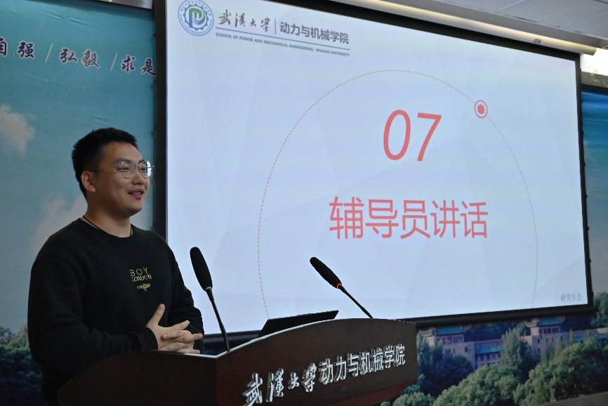 会议第五项由辅导员周迪一总结讲话,他对各个部门未来工作方向进行部署,鼓励大家积极参与学生活动,加强沟通交流,提升团队协作能力。同时期望各位学生骨干当好领头羊,发挥引领和带动作用。相信在学院党委的领导和团委的指导下、在全体成员的共同努力下,院研究生工作一定会取得更加辉煌的成绩。