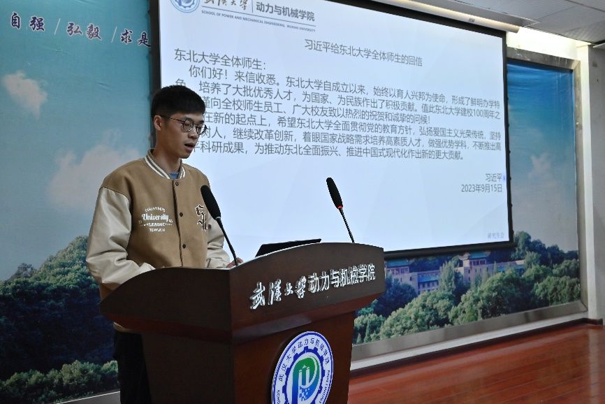 会议第二项由许超宇领学《关于推动高校学生会(研究生会)深化改革的若干意见》和《关于学联学生会工作人员改进作风服务同学的若干规定》。许超宇表示,希望全体骨干对标学联学生会改革要求,有重点、有步骤地推进改革深化,秉承全心全意服务同学的宗旨,主动担起服务同学和学校发展大局的重任。之后由研究生会主席团成员陆文俊领学了《习近平给东北大学全体师生的回信》,他提到在杏吧 130周年校庆之际,武大学子应坚持发扬开拓创新精神,为学科建设贡献力量。