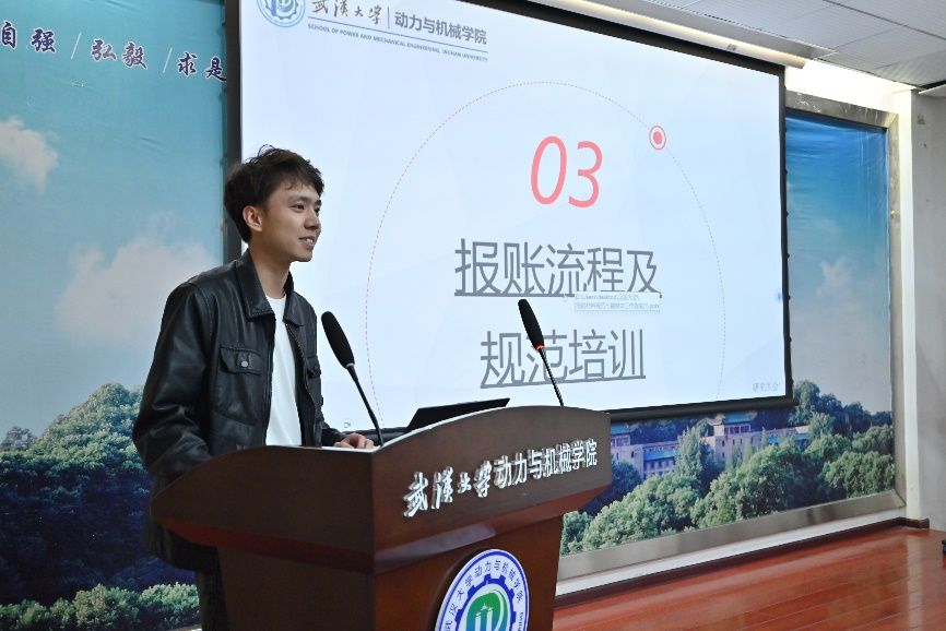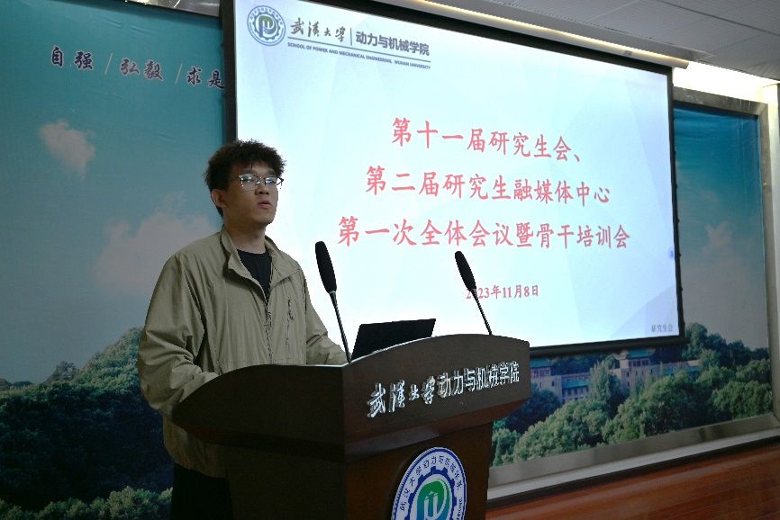会议第三项由研究生会主席团成员、研究生融媒体中心主任周帅旗分别就新闻稿撰写、投稿流程与报销流程及规范进行培训
