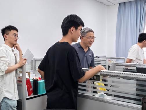 走访过程中,老师与同学们亲切问候,详细了解了学生们的学习状态与科研进展以及生活情况,重点对实验室用电安全、电信诈骗等风险防范进行了提醒。除强调安全问题外,匡松还与同学们在课业学习、未来发展、就业方向等事项上展开了深入的交流,对同学们在生活学习上产生的疑惑作了详细解答。他表示,要保持和导师、辅导员的联系,有任何困难都要及时告知学院,鼓励他们奋发有为、踔厉奋进。