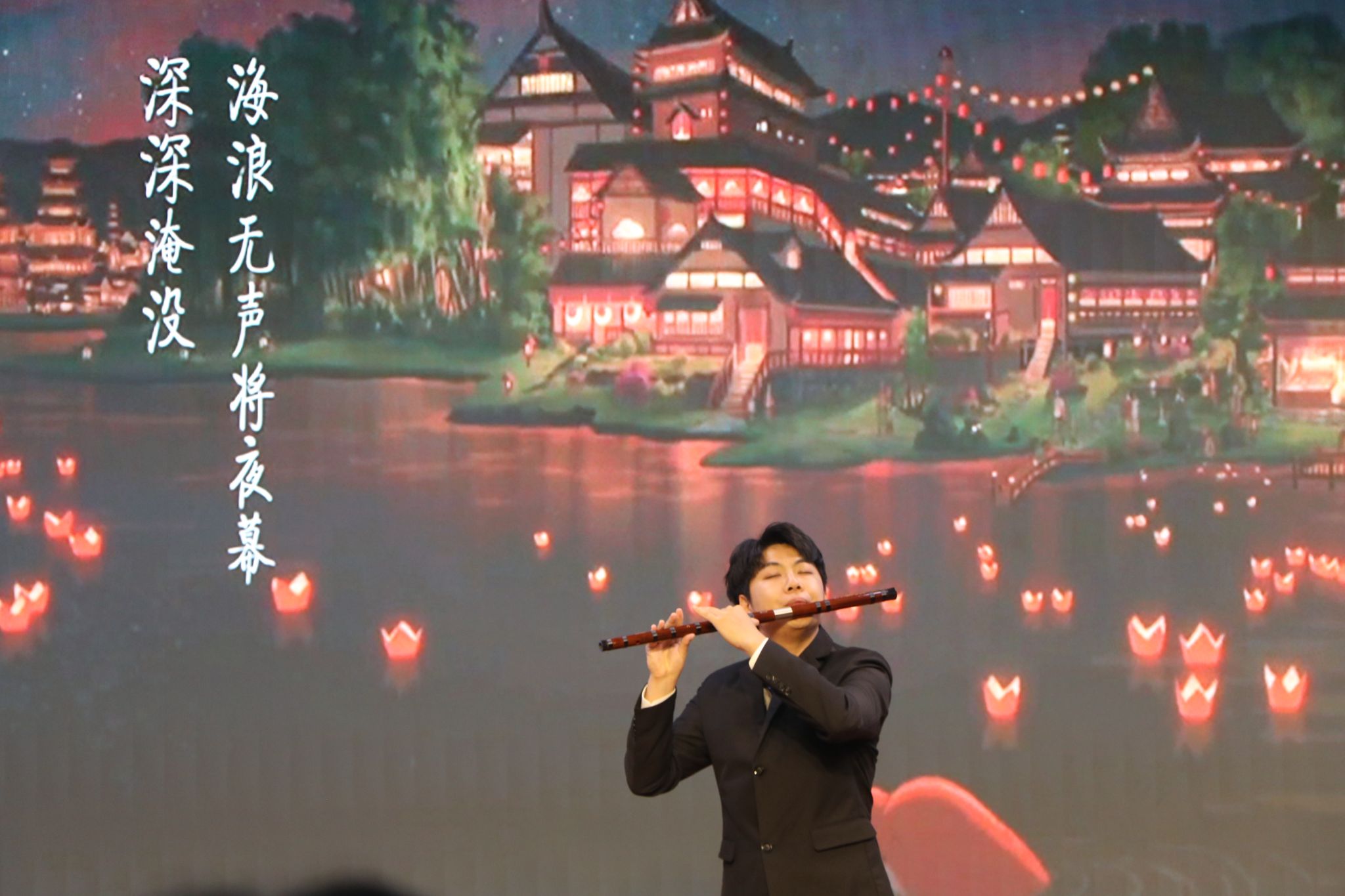 联欢会融合歌舞、朗诵、相声等多种形式,节目有看点、有泪点、有笑点。歌舞节目《Mr. Vampire》《月半小夜曲》《海阔天空》展现动机学院学子的激情活力,引得现场掌声不断。相声《我要打篮球》有趣又有料,以幽默的语言将动机学院学子的学校经历、生活点滴生动呈现,在欢声笑语中表达了毕业生对动机学院的感念之情。乐器独奏《大鱼》悠悠笛声,生动地展现了中国古典文化的唯美意境和哀愁。此外,本次联欢会特别邀请学院老师们带来朗诵《给毕业生的散文诗》,充分表达了老师们对毕业生们的深情祝福与殷切期盼。