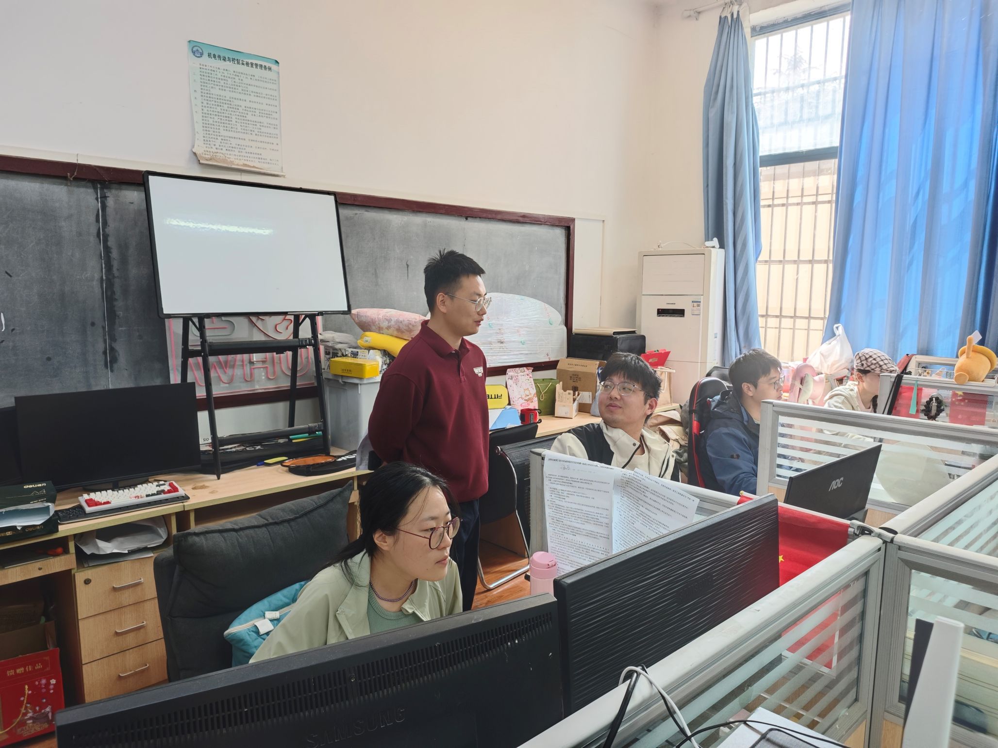 在走访检查过程中,匡松副书记向学生们强调了假期安全注意事项,叮嘱大家注意出行安全、文明祭祀,特别提醒留校学生注意用电安全,并对学生课业室的电器使用、卫生环境等进行了全面排查,确保消除安全隐患。期间,老师与学生们亲切交流,关切询问学生的学业进展、科研情况和日常生活状况,对同学们提出的问题给予耐心解答。通过面对面的沟通,不仅排查了安全隐患,更让同学们感受到学院的温暖关怀。