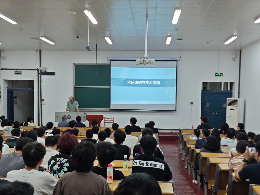 会议第二项,侯佑民为大家讲解学术诚信规范。他从典型案例出发,分析了学术不端的主要表现和形成原因,并告诫同学们要弘扬科学精神,坚守科学道德,遏制学术不端,共建良好学风。