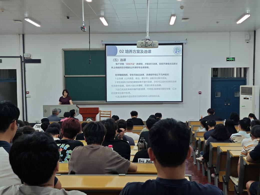会议第三项,金洁详细介绍了研究生的培养相关工作。她从研究生培养环节、培养方案及选课、研究生系统使用等方面向大家展开介绍,帮助新生对研究生阶段的培养有了基本认知。