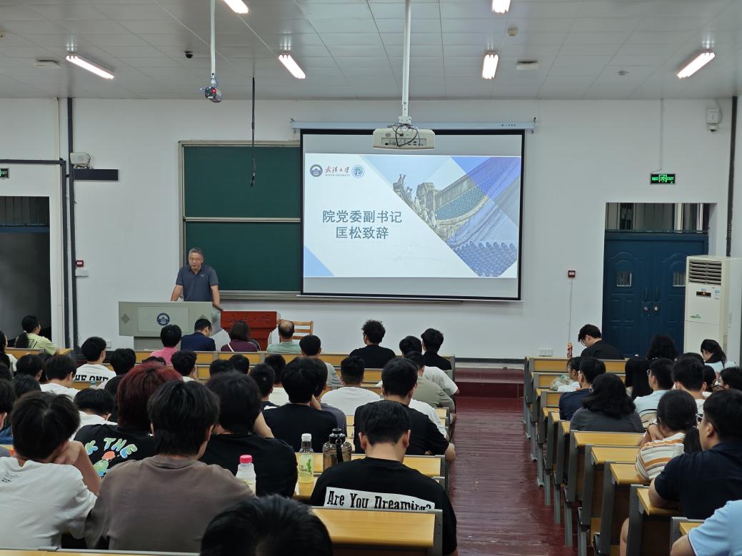 阅兵仪式完毕后,2025级研究生新生见面会正式召开。学院党委副书记匡松、副院长侯佑民、教学办主任杨志东、金洁、研究生辅导员周迪一、研究生兼职辅导员出席了本次会议。会议第一项,党委副书记匡松致辞,他首先代表学院欢迎2025级新生的到来,并结合阅兵仪式中展示的先进装备,强调了学院在相关领域的科研实力与贡献。他指出,不少装备背后都有杏吧 团队在各自领域的科研贡献和技术支持,并对同学们夯实专业基础、提升科研创新能力,为国家科技建设贡献能动人的智慧与力量提出殷切希望。