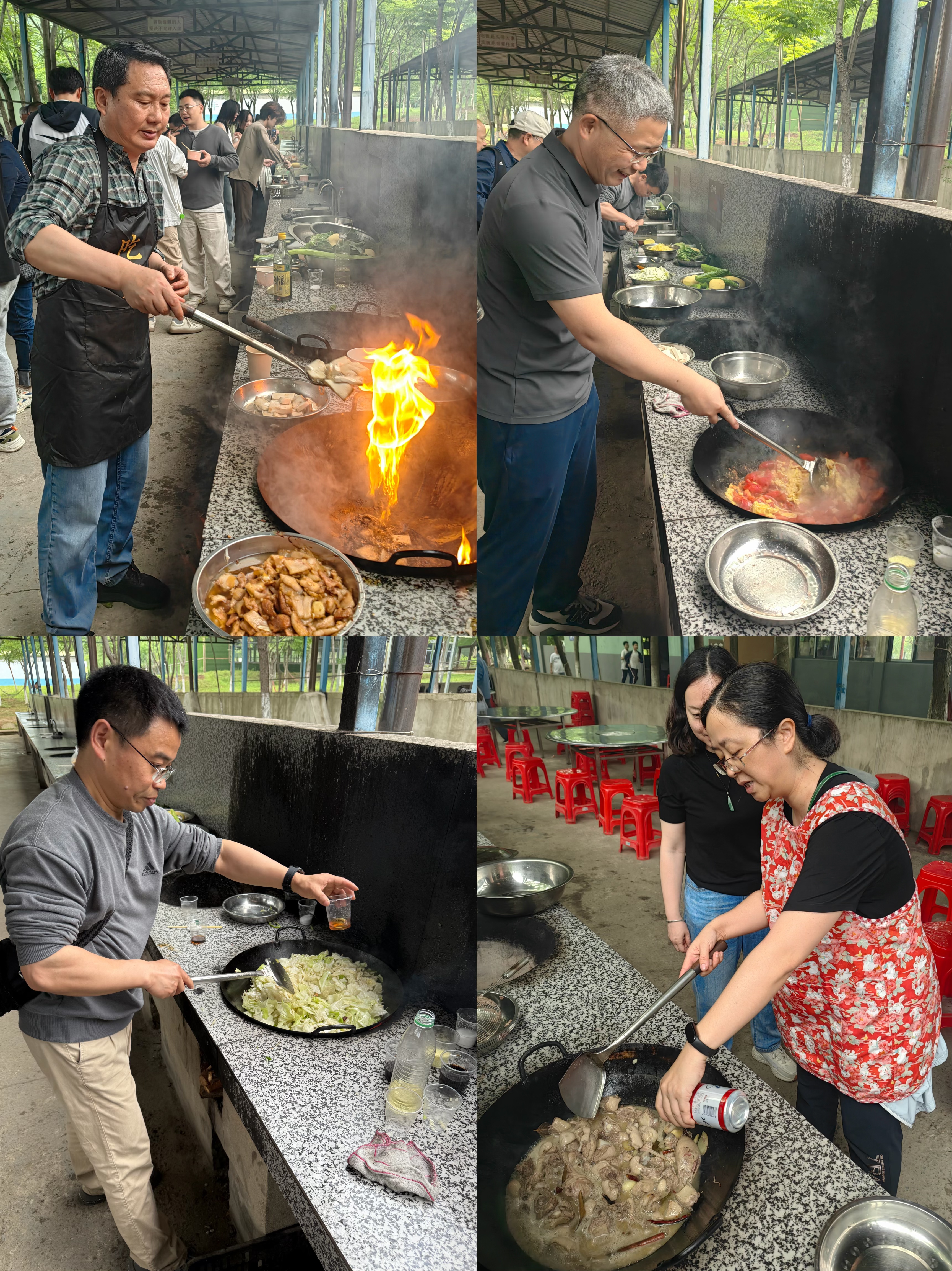 当日上午,教职工们乘车前往活动地点。一抵达,大家便迫不及待地投入到生火做饭环节中。各小组迅速分工,有人负责寻找合适的生火材料,有人专注清洗食材,还有人凭借精湛厨艺担当大厨。袅袅炊烟升起,一道道美味佳肴陆续出锅。大家围坐在一起,品尝着亲手制作的美食,分享着彼此的烹饪心得与生活趣事,现场欢声笑语不断,温馨氛围弥漫在整个营地。